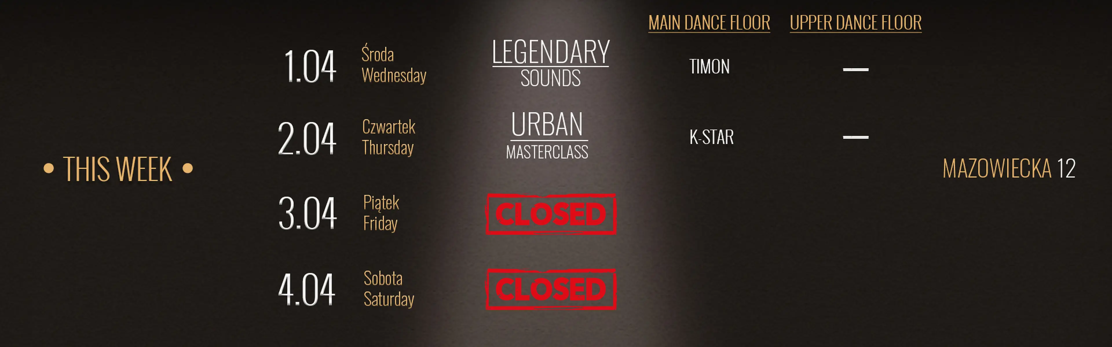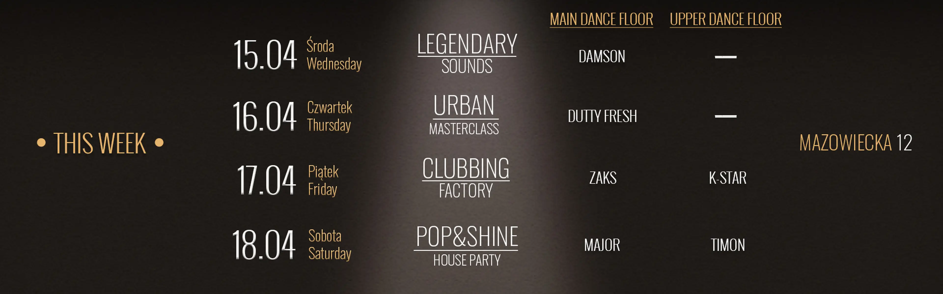 Klub w centrum Warszawy to miejsce, które tętni życiem od środy do niedzieli. Oferujemy najnowsze hity, legendarne perełki muzyczne oraz wyjątkowe wydarzenia specjalne. Na naszej scenie spotkasz najlepszych DJ-ów z całego świata, którzy gwarantują, że każda noc w klubie będzie niezapomnianym przeżyciem.