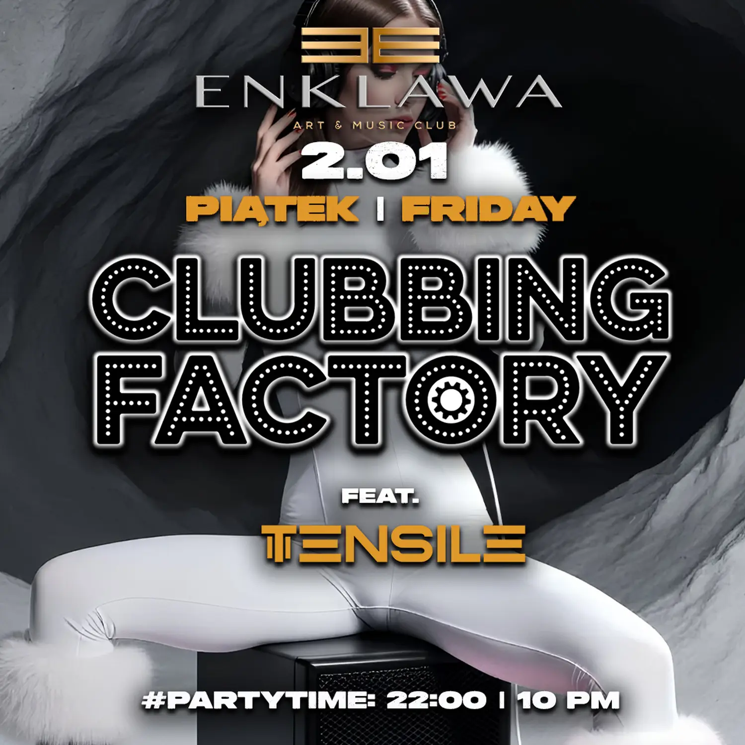 Zapraszamy na pierwsza imprezę w Nowym Roku po minionym, hucznym i wyjątkowym Sylwestrze! Clubbing Factory, czyli najlepsze brzmienia klubowe które zaserwuje wam DJ Tensile! Zaczynamy o 22:00, a Panie, zapraszamy bezpłatnie do północy! #SeeYou