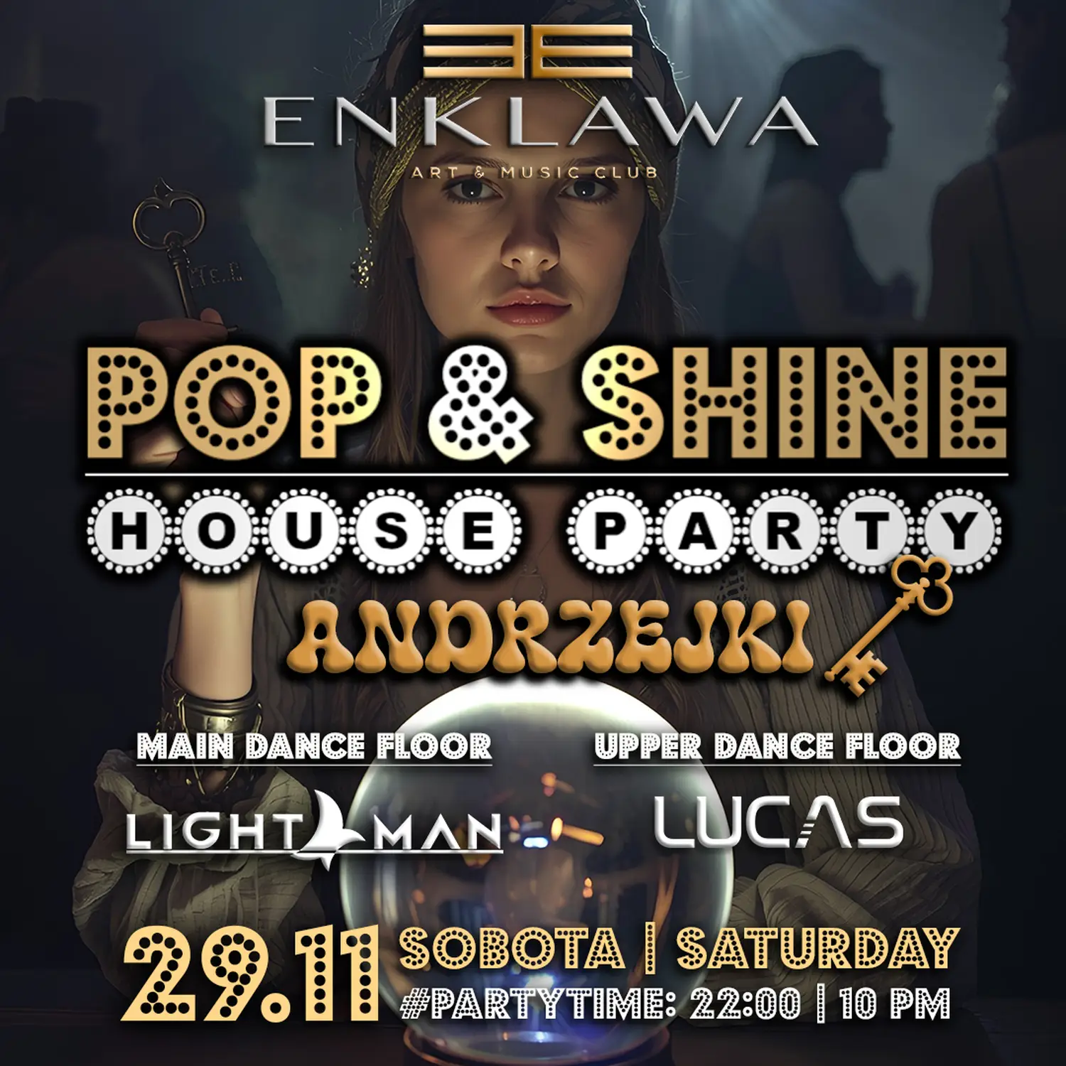 Andrzejkowa noc pełna magii i dobrej zabawy! Na dużej sali odpalamy najgorętsze taneczne sztosy, a na górnym parkiecie płyną gorące R’n’B vibes! Wpadajcie na specjalną edycję Pop&Shine, gdzie DJ Lightman i DJ Lucas rozkręcą imprezę jak nigdy! Start o 22:00 — tańczymy do rana! #SeeYou